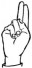 На ћирилици написано ВУКОСАВ ВЕЛИМИРОВИЋ састоји се из 18 слова [?]. Исписано ћириличном једноручном азбуком за глувонеме: